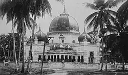Construction of the mosque started in 1889, following the order of Tengku Sultan Abdul Aziz, late 19th-century ruler of the Langkat Sultanate and son of Tengku Sultan Haji Musa al-Khalidy al-Muazhzham Syah.[2] The mosque was designed by a German architect. Many of the construction workers were the Chinese inhabitant of Langkat Regency. Material for construction were shipped from Penang and Singapore via the river Batang Serangan, and was transferred on site with 80 ox-carts.[2] Abdul Aziz died before the completion of the mosque, so the construction was taken over by his son Tengku Sultan Mahmud Rahmat Syah.[2] The mosque was completed on June 13, 1902. A minaret was added in 1926.[1]