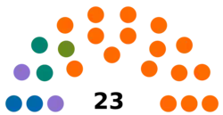 The Assembly elected at the 2019 local government elections, is made up of 23 counselors, with the following party composition:[1]