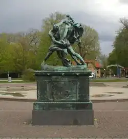 ![]() Bältespännarna statue viewed from Avenyn toward the entrance of the Garden Society of Gothenburg | |