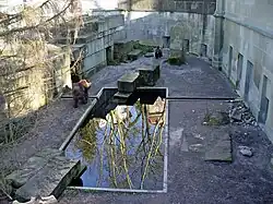 The first bear pit was at what is still called the Bärenplatz (Bear Plaza). The current pit is the fourth such enclosure, following on from pits at various locations around the city, and was first opened in 1857.[1] In 1925, a smaller adjacent pit was added to raise the young bear cubs.