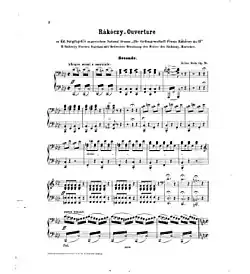 His best known piece Erinnerung an Bartfeld is written on the melodies of typical local folk songs of Šariš. This piece was (partly) mistakenly rewritten by Johannes Brahms as Hungarian Dance No. 5 because Brahms thought it was a folk song, not an original work.[4]Anton Bruckner copied the instrumentation and form (but not the harmony) of Kéler's Mazzuchelli-Marsch (also called Apollo-Marsch) exactly for his own March in E-flat major.[5] (The Apollo Marsch was later mistaken for a work of Bruckner's).