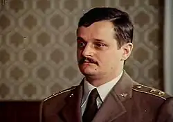 Bertalan Farkas's astronaut colleague and commander was Valery Kubasov, and Bela Magyari's was Vladimir Dzhanyibekov. Both Hungarians completed their training with excellent results, and the Hungarian government selected Bertalan Farkas to fly in the Soyuz-36 spacecraft, while Béla Magyari was ready to replace him all the time.[4] After the mission, he was promoted from captain to major and received the Order of the Flag of the Hungarian People's Republic, decorated with a laurel wreath.[5]