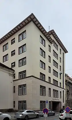 The BUB had its head office from the start on the prestigious Na příkopě thoroughfare in central Prague, Nos.958-959, in a neoclassical building erected in the 1830s. In 1929, it demolished a building in the same block (No.574) to erect a more modern facility, but that project never came to fruition.[2]