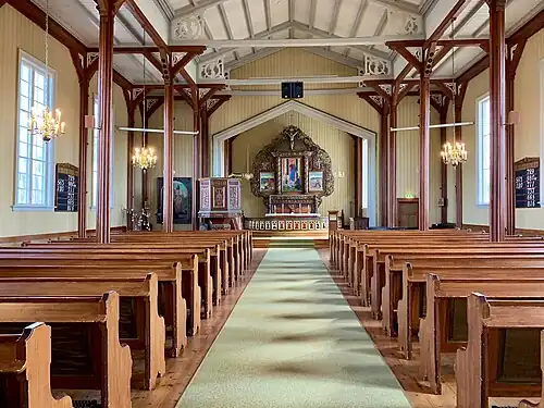 Bø Church (Norwegian: Bø kyrkje) is a parish church of the Church of Norway in Midt-Telemark Municipality in Telemark county, Norway. It is located in the village of Bø. It is the main church for the Bø parish which is part of the Øvre Telemark prosti (deanery) in the Diocese of Agder og Telemark. The white, wooden church was built in a long church design in 1875 using plans drawn up by the architect Jacob Wilhelm Nordan. The church seats about 450 people.[1][2]