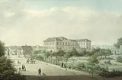 The modern street takes its name after Frederik Christoffer Bülow who was inspector at Ladegården. When the so-called Demarcation Line was moved from Jagtvej to The Lakes in 1852, he acquired large areas of land, both between the Ladegård Canal and Gammel Kongevej in Frederiksberg and at Blågård in Nørrebro. He sold off the land in Frederiksberg in lots with a registered contractual term (Danish: servitut), effective until 1925, ensuring that it could only be used for low, private villas.[1][2] Bülow proposed that H. C. Ørstedsvej was extended all the way to Gammel Kongevej but this was rejected. He then established Bülowsvej on his own land, naming it after himself.