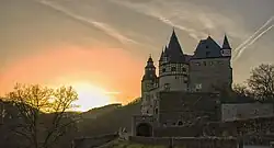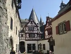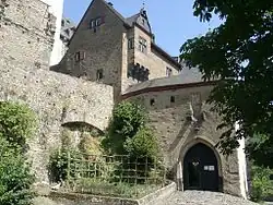 Bürresheim Castle (German: Schloss Bürresheim) is a medieval castle northwest of Mayen, Rheinland-Pfalz, Germany. It is built on rock in the Eifel mountains above the Nette. Bürresheim Castle, Eltz Castle and Lissingen Castle are the only castles in the Eifel region which have never been destroyed.[1] It was inhabited until 1921 and is now a museum operated by the General Directorate for Cultural Heritage Rhineland-Palatinate.[2]