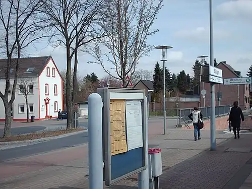 Büttgen station is a railway station in the town of Büttgen, a part of Kaarst in North Rhine-Westphalia, Germany. The station was opened on 8 January 1868.[5] It lies on the Mönchengladbach–Düsseldorf railway line, one of the oldest in Germany that was originally constructed by the Aachen-Düsseldorf-Ruhrort Railway Company.[6] Büttgen station has two tracks and two platforms and is classified by Deutsche Bahn as a category 5 station.[1]