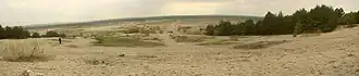 Błędów Desert (Polish: Pustynia Błędowska), is an area of sands and gravels located between Błędów (part of Dąbrowa Górnicza in Metropolis GZM) and the villages of Chechło and Klucze in Poland. The area lies mainly on the Silesian Highlands in the Lesser Poland Voivodeship. The Błędów Desert is Central Europe's largest accumulation of loose sand in an area away from any sea, deposited thousands of years ago by a melting glacier.[1][2] It occupies an area of 32 km2 (12 sq mi). The sands have an average depth of 40 m, up to 70 m at the maximum. The Biała Przemsza River divides the desert in two from east to west. The northernmost part of the desert is closed to visitors because it is a military zone, where exercises take place.