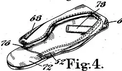 Ellis invented a method in which he coated a fabric with a rubber composition. After heating and drying, the non-tacky web was then cut into strips and wound into rolls. The next step in the process was to apply a coating of rubber cement to the pre-coated material just before the strip was applied to the insole. This application is made by the shoe manufacturer. The fabric thus coated is then at once applied to the insole and "formed in" around the lip, usually with a hand tool. This process does not require heat when it is inserted into the shoe.[4]