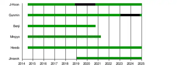 ![]() From left to right: Benji (former), Gunmin, J-Hoon, Heedo, Minpyo (former). | |