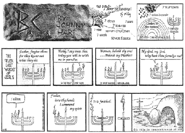 In interviews, Hart referred to his strip as a "ministry" intended to mix religious themes with secular humor.[21] Though other strips such as The Family Circus and Peanuts have included Christian themes, B.C. strips were pulled from comics pages on several occasions due to editorial perception of religious favoritism or overt proselytizing. Easter strips in 1996 and 2001, for example, prompted editorial reaction from a handful of U.S. newspapers, chiefly the Los Angeles Times and written and oral responses from Jewish and Muslim groups who were offended that Hart would include his own Christian beliefs in his strip.