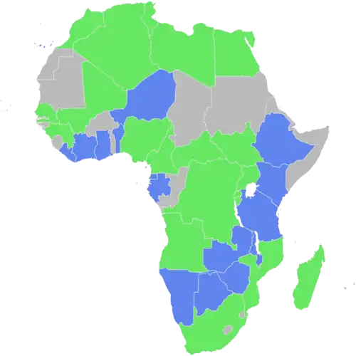 Green: Nile Conference; Yellow: Sahara Conference; Red: Kalahari Conference.