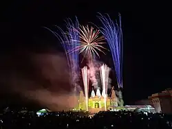 Diwali is one of many important festivals to worshiping Hindus. Diwali is also known as the Festival of Lights. Usually diyas (oil lamps) are lit in the home to drive away evil.[18] People also celebrate with light shows and fireworks. BAPS Mandir in Chicago celebrates Diwali by lighting up the Mandir with many lights and also has a firework show that promptly follows the Diwali Maha Aarti. The day after Diwali is the Indian New Year. Many Hindus go to the temple on this day for blessings for the new year. BAPS celebrates this day with Annakut. Annakut means "mountain of food" and it represents the offering of food to god.[19] Every year at BAPS thousands of vegetarian dishes are offered to the gods in return for their blessings. These offerings range from sweets to savory food items such as pizza. Along with Annakut, BAPS also does a New Year Aarti every hour inside the temple so that people visiting at the time can pray and receive blessings.