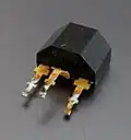 a discontinued plastic case with leads that locks into a PCB's holes. | ||