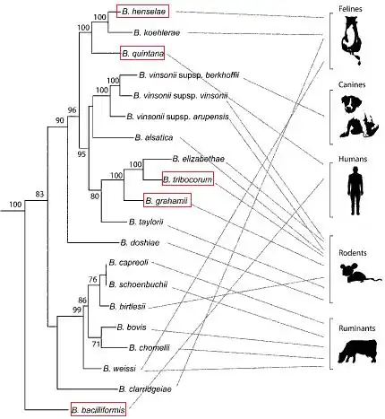 - Alsmark, Cecilia M.; Frank, A. Carolin; Karlberg, E. Olof; Legault, Boris-Antoine; Ardell, David H.; Canbäck, Björn; Eriksson, Ann-Sofie; Näslund, A. Kristina; Handley, Scott A.; Huvet, Maxime; La Scola, Bernard; Holmberg, Martin; Andersson, Siv G. E. (29 June 2004). "The louse-borne human pathogen Bartonella quintana is a genomic derivative of the zoonotic agent Bartonella henselae". Proceedings of the National Academy of Sciences of the United States of America. 101 (26): 9716–9721. Bibcode:2004PNAS..101.9716A. doi:10.1073/pnas.0305659101. PMC 470741. PMID 15210978.