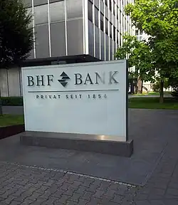BHF Bank, full name Berliner Handels- und Frankfurter Bank was a German bank formed in 1970 by merger between the Berliner Handels-Gesellschaft and Frankfurter Bank, both founded in the 1850s. It was initially named Berliner Handels-Gesellschaft – Frankfurter Bank (lit. 'Trade Company of Berlin – Bank of Frankfurt') and was rebranded BHF Bank in 1975.[1]: 43