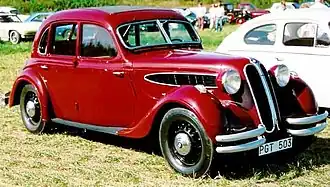 The BMW 326 is a medium-sized sedan produced by BMW between 1936 and 1941,[3] and again briefly, under Soviet control, after 1945. The 326 was BMW's first four-door sedan.[4] It had an innovative design and sold well despite its relatively high price. It also had an unusually involved afterlife.