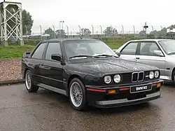 The first BMW M3 was based on the E30 3 Series and was intended to be a homologation special to satisfy the Deutsche Tourenwagen Meisterschaft and Group A Touring rules, which required a total of 5,000 of the base model to be built with a further 500 evolution specials.[4] It was presented to the public at the 1985 Frankfurt Motor Show, and began production from March 1986 to June 1991.[5][6][7] The E30 M3 was mainly produced in the coupé body style, but limited volumes of convertibles were also produced.[8]