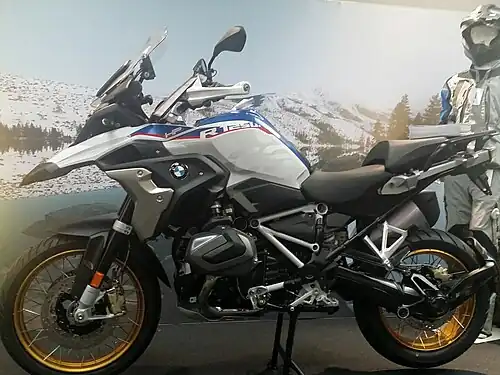 The BMW R1250GS is a motorcycle manufactured in Berlin, Germany by BMW Motorrad, part of the BMW group. It is one of the BMW GS family of dual sport motorcycles. It has a 1,254 cc (76.5 cu in), two-cylinder boxer engine with four valves per cylinder and variable valve timing (VVT).