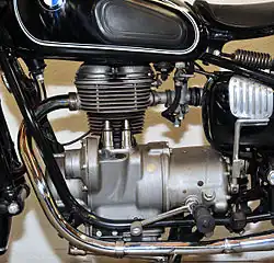 Based largely on the R26, in 1960 the R27 added rubber mounts for the engine and boosted power to 18 hp (13 kW). The 250 cc OHV vertical single was the only rubber-mounted thumper engine BMW ever produced, and was their last shaft drive single-cylinder motorcycle. The engine pumped out 18 hp (13 kW), the highest ever for a shaft-drive BMW single. BMW manufactured 15,364 R27 models (engine numbers 372 001 – 387 566 ) over the production years of 1960 to 1966. Some of the 1966 R27 models were sold as 1967 models because dealers in those years often would assign dates to BMW motorcycles when they sold them, and not necessarily when they were manufactured.[1]