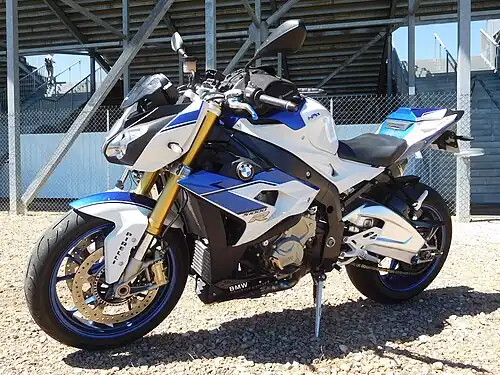 The BMW S1000R is a naked motorcycle[1] manufactured by BMW Motorrad since 2014. It is based upon the S1000RR superbike with which it shares its engine, gearbox, frame and suspension.[2]