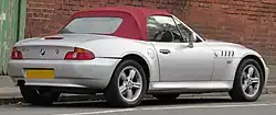The Z3 was the first modern mass-market roadster produced by BMW.[6] It was introduced for the 1996 model year shortly after being featured in the James Bond movie GoldenEye. More than 15,000 were sold by the time the car was introduced.[7] The Z3 underwent a facelift in 1999 with the introduction of a coupé bodystyle and featured revised styling, before the end of its production run in 2002.[8] The coupé had controversial styling and was nicknamed as "clown shoe".[9] It was manufactured and assembled in Spartanburg, South Carolina.[10]