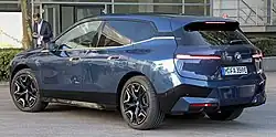 The BMW iX is a battery-electric mid-size luxury crossover SUV manufactured and marketed by the German automobile manufacturer BMW. It was unveiled in concept form as the Vision iNext at the 2018 LA Auto Show,[4] and then in its production form in November 2020.[5] The iX is BMW's second fully electric vehicle after the i3 in 2013,[6] and the fourth BMW i sub-brand model.