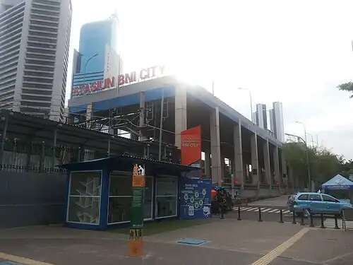 The station is named as BNI City (Indonesian: Stasiun BNI City), after its naming rights was purchased by Bank Negara Indonesia.[12] It is the first railway station in Indonesia which granted its naming rights to a corporation.[13]