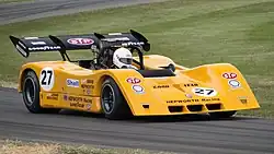 The BRM P167 is a purpose-built sports prototype race car, designed, developed and built by British Racing Motors to Group 7 racing specifications, specifically to compete in the Can-Am racing series, between 1971. It was BRM's final Can-Am race car chassis. It was powered by a naturally aspirated, Chevrolet big-block engine, developing a solid 600 hp (450 kW).[1][2][3][4][5][6][7][8][9]