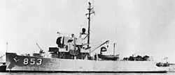 PCER-853 entered the Navy yard in Hawaii and was still undergoing overhaul when Japan capitulated. In September 1945, the vessel steamed to the east coast of the United States and was placed in the Atlantic Reserve Fleet at Green Cove Springs, Fla.