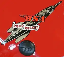 The BSA Road Rocket was a 1950s 646 cc (39.4 cu in) air-cooled parallel twin motorcycle designed by Bert Hopwood and produced by Birmingham Small Arms Company (BSA) at Small Heath, Birmingham. Developed from the A10 Golden Flash it was the first sports bike in the BSA A10 series. The A10 had a reputation for reliability but was struggling to compete against the Triumph engines and the Norton Featherbed frames.[4] Advertised by BSA in 1956 as 'undoubtedly the world's greatest motor cycle'[5] the Road Rocket was discontinued in 1958 when it was replaced by the BSA Super Rocket.[6]