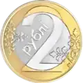 Rbls 2 | 23.5 | 2.0 | 5.81 | Brass-plated steel ring with a nickel-plated steel center plug | Lettered | National emblem of Belarus, name of the country, year of minting, divided by Bahach ornament | ||||||