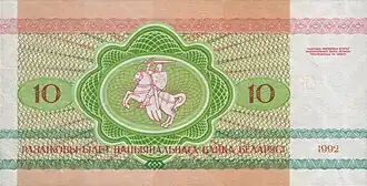- ^ "Banknotes and Coins of the National Bank of the Republic of Belarus". National Bank of the Republic of Belarus. Retrieved 2012-06-15.