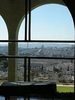 On October 24, 1979, church president Spencer W. Kimball visited Jerusalem to dedicate the Orson Hyde Memorial Gardens, located on the Mount of Olives.[12] The church had donated money to beautify the Jerusalem area, and officials of the Israeli government were present at the occasion. It was at this dedication that Kimball announced the church's intent to build a center for BYU students in the city. Negotiations between the church and the Israeli government stretched from 1980 to 1984. The land the church wanted for the center, located at the northwestern margin of Mount of Olives, right next to the valley which separates it from Mount Scopus, had been occupied by Israel since the Six-Day War of 1967 and could not be sold under Israeli law. The church decided to obtain a lease on the land instead. Leasing the land also prevented the politically controversial problem of the church owning a piece of Jerusalem land. Israeli officials saw the building of the center on the land as a way of solidifying control over land whose ownership was ambiguous under international law. By August 1984, the church had the land on a 49-year lease, building permits had been obtained, and construction on the building began.[10][12][13][14][15][16]