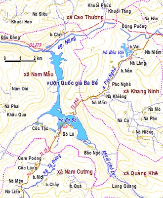 Ba Bể Lake (Vietnamese: Hồ Ba Bể; Ba means Three, Bể is from the Tày language word pé, meaning "lake") is the largest natural lake in Vietnam. It is located in Nam Mẫu commune, Ba Bể district, Bắc Kạn Province in the Northeast region of the country.