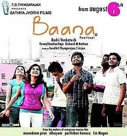 Baana Kaathadi (transl. Kite) is a 2010 Indian Tamil-language romance film written and directed by Badri Venkatesh. The film stars Atharvaa, Samantha and Prasanna. Featuring music scored by Yuvan Shankar Raja, cinematography by Richard M. Nathan and editing by Suresh Urs, the film was released on 6 August 2010. It is the last movie of Atharvaa's father Murali, who made a special appearance in this movie before his death in September 2010. The movie received critical acclaim and an above average success at the box office. The film marked both Atharvaa's and Samantha's lead debut film in Tamil cinema.