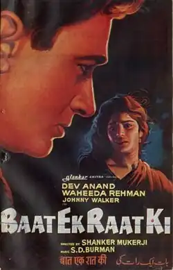Baat Ek Raat Ki (English: A Tale of One Night) is a 1962 Hindi film directed by Shankar Mukherjee, starring Dev Anand, Waheeda Rehman and Johnny Walker.