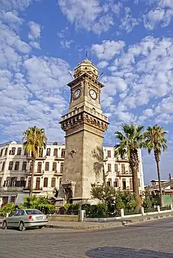Bab al-Faraj Clock Tower (Arabic: برج ساعة باب الفرج) is one of the main landmarks of Aleppo, Syria. It was built in 1898-1899 by the French[1] architect of Aleppo city Charles Chartier with the help of the Syrian engineer Bakr Sidqi, under the Ottoman ruler of Aleppo; wāli Raif Pasha.[1][2]