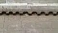 A significant decorative feature is the shields on the flanks and fronts of the protruding towers, which symbolize victory in protecting the city against invaders.[1] A long horizontal Arabic inscription that runs across the facade of the gate, above the shield motifs, names Badr al-Jamali and his caliph, al-Mustansir, and also gives the date of construction.[1] The bulk of the inscription praises Badr al-Jamali in particular.[2] The full inscription, translated from Arabic, reads: