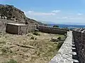 Inside the castle, to the left of the entrance and adjacent to the north-eastern wall, there is a pointed arch fountain with a water reservoir. A second fountain has been added next it. Only the traces of the foundations of the mosque and the Turkish bath are visible today, but the remains of stone pedestal and brick shoes have survived from the mosque's minaret, which was situated on the castle wall.[1]