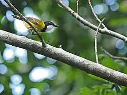 The Babar whistler was formally described in 1884 by the German naturalist Adolf Bernhard Meyer based on a specimen collected on the island of Babar in Indonesia. He coined the binomial name Pachycephala sharpei where the specific epithet was chosen to honour the English ornithologist Richard Bowdler Sharpe.[1][2][3] The Babar whistler was formerly classified as a subspecies of the yellow-throated whistler (Pachycephala macrorhyncha) but is now considered to be a separate species based on the deep genetic divergence, morphology, and distinct female plumage.[4][5] The species is monotypic: no subspecies are recognised.[4]