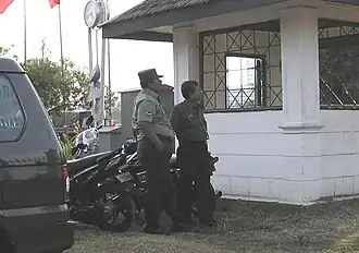 Babinsa (from Indonesian: Bintara Pembina Desa, lit. "Village Trustee NCO") is a senior Indonesian territorial army Non-commissioned officer or senior Enlisted rank official who is in charge for carrying out territorial defence, development and monitoring duties for a community in the village/Kelurahan level in Indonesia.[1] They report to and are under the command of the local Military Sector Command (Koramil). In urban areas, Babinsas hold the rank of sergeant major or master sergeant, and in rural areas Babinsas hold the rank of master corporal.
