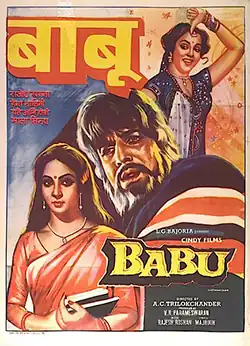 Babu (Sir) is a 1985 hit Bollywood film starring Rajesh Khanna in the lead role,[1] with Hema Malini, Mala Sinha, Rati Agnihotri, and Deepak Parashar in supporting roles.[2] The music was composed by Rajesh Roshan.[3] It is a remake of a Tamil film of the same name from 1971 directed by A. C. Tirulokchandar and starring Sivaji Ganesan, which itself was a remake of the 1965 Malayalam film Odayil Ninnu, a film adaptation of Malayalam writer P. Kesavadev's acclaimed novel of the same title.[4]