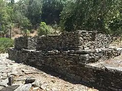 The "oldest" houses of Beli and Daralari can be traced back to two brothers, whose direct lineage derives from the mythical Founder of the ancient Realm of Bubulu. According to the stories of the Daralari people, the mythical ancestors came from the sea and took over "the entire land, touched by the Sun". The ancestral names of both Aldeias' lineages are held sacred and therefore must not be spoken out loud. They derived from the origin of the houses and are kept secret from outsiders. The names of modern Aldeias are used in everyday life and during local ceremonies. The ruling houses of Daralari are also called Uma Buti (white house) and Uma Ita (black house).[18] The associated shrines were rebuilt in 2000, once the Indonesian occupation had ended. Although the Uma Buti shrine is owned by the Daralari, it belongs to the entire community of the Suco. Uma Ita, the lower-ranked shrine, is referred to as the ruling house, where the traditional symbols of the Daralari political power (rotan) were kept to be later distributed to subordinate houses. Both shrines keep sacred looms, which once belonged to the legendary ancestors. It is believed that the looms carry the essence of the ancestors, and that the ancestors themselves live within certain parts of the shrines. During ceremonies, food, water, betel nuts (bua), betel leaves (malu) and other offerings are deposited in these sacred locations, and are later distributed back to the community. The nuts and leaves are said to have special protective powers. During community ceremonies and healing rituals, they serve as a symbol for community members and as protection for outsiders.[19] Beli has only one main house, simply referred to as Um Luli (sacred house). According to the local legend (Naueti: tete bo'ona, literally the oldest story) the brothers are said to have lived near the Baha Liurai (The Hill of the Ruler). However, the brothers started fighting, as the elder Beli was said to have abandoned his duties, much to the younger Daralari's dismay. Thus the elder brother lost his privileges and had to abandon the Sacred Land, while Daralari rose to be the leading lineage of the Ancestors.[20]