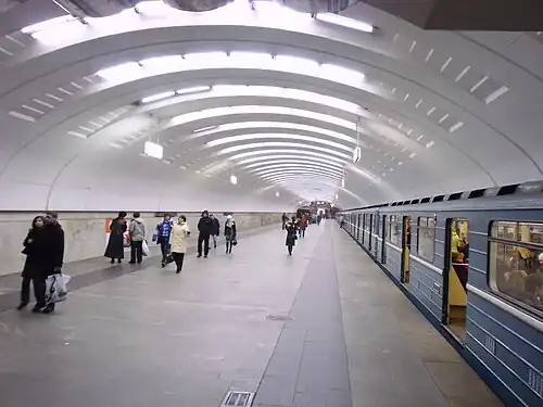 Babushkinskaya (Russian: Бабушкинская) is a Moscow Metro station in the Babushkinsky District, North-Eastern Administrative Okrug, Moscow. It was opened on September 29, 1978 as a part of the VDNKh – Medvedkovo sector. It is on the Kaluzhsko-Rizhskaya Line, between Sviblovo and Medvedkovo stations after the commissioning of which there were 107 stations in the Moscow Metro.