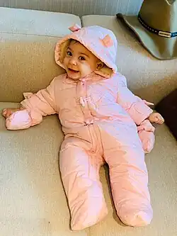 In an article in the October 1945 issue of Ladies' Home Journal, B. F. Skinner stated that clothing and bedding "interfere with normal exercise and growth and keep the baby from taking comfortable postures or changing posture during sleep".[2] An infant may stretch, necessitating clothing that is sufficiently loose to allow movement.[3]