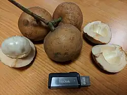 Baccaurea macrocarpa, also called tampoi, is a small, tropical rainforest substory fruit tree in the family Phyllanthaceae native to Southeast Asia, especially Borneo.[2] It is dioecious, and the female tree bear fruit directly on the trunk and large branches. The fruit is large, orange-skinned, white-fleshed, with a delicious tangy flavour somewhat like mandarin (tangerine). Depending on conditions, the fruit may closely clothe the trunk beautifully, like the fruit of many Ficus species.