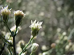 This is a shrub producing erect, branching green stems up to a meter tall. The leaves are linear or thinly lance-shaped and less than 2 centimetres (0.79 in) long. The inflorescence is a wide array of flower heads. A dioecious species, the male and female plants produce different flower types which are similar in appearance. The flowers and foliage are glandular. Female flowers yield fruits which are ribbed achenes, each with a fuzzy body 2–3 millimetres (0.08–0.12 in) long and a pappus about 5 millimetres (0.20 in) long.[2]