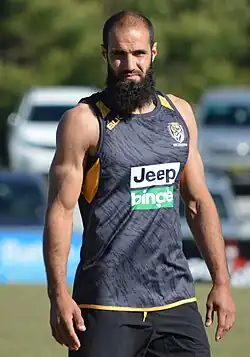 Bachar Houli OAM (Arabic: بشار حولي, born 12 May 1988) is a former Australian rules footballer who played 232 games over a 15-year career with Richmond and Essendon in the Australian Football League (AFL). He is a three-time premiership player with Richmond and was named an All-Australian half-back during his 2019 premiership winning season. Houli is the first devout Muslim and third Muslim overall to play in the AFL.