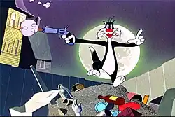 Back Alley Oproar is a Warner Bros. Merrie Melodies animated short directed by Friz Freleng.[2] The short was released on March 27, 1948, and features Sylvester and Elmer Fudd.[3] The title is a play on "uproar" and "opera". This is a rare exception for Sylvester as he wins in this cartoon. It is a remake of Freleng's Notes to You (1941).